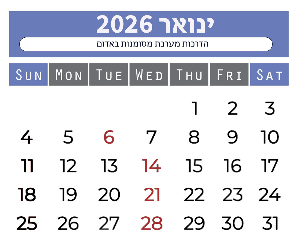 ב 6.1.2026 תהיה הדרכה ביום שלישי במקום יום רביעי ה 7 לחודש